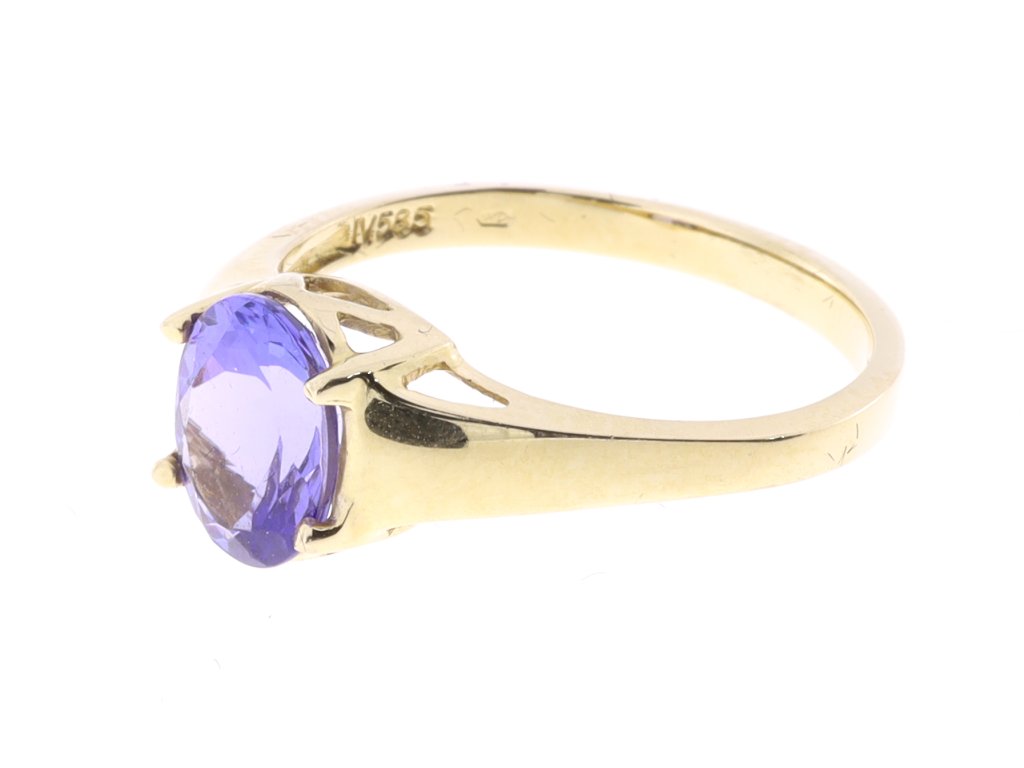 Elegantní prsten ze 14kt 585/1000 zlata s tanzanitem 1,10 ct, Vaha: 2,90 g