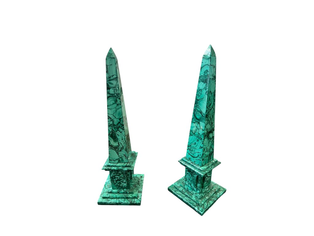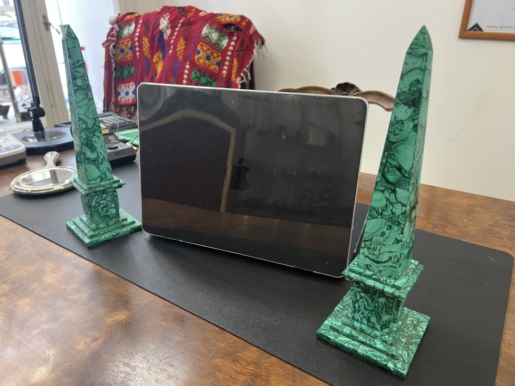 Pár dekorativních sloupků z přírodního malachitu (cca 1970–1980)