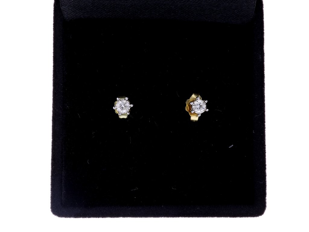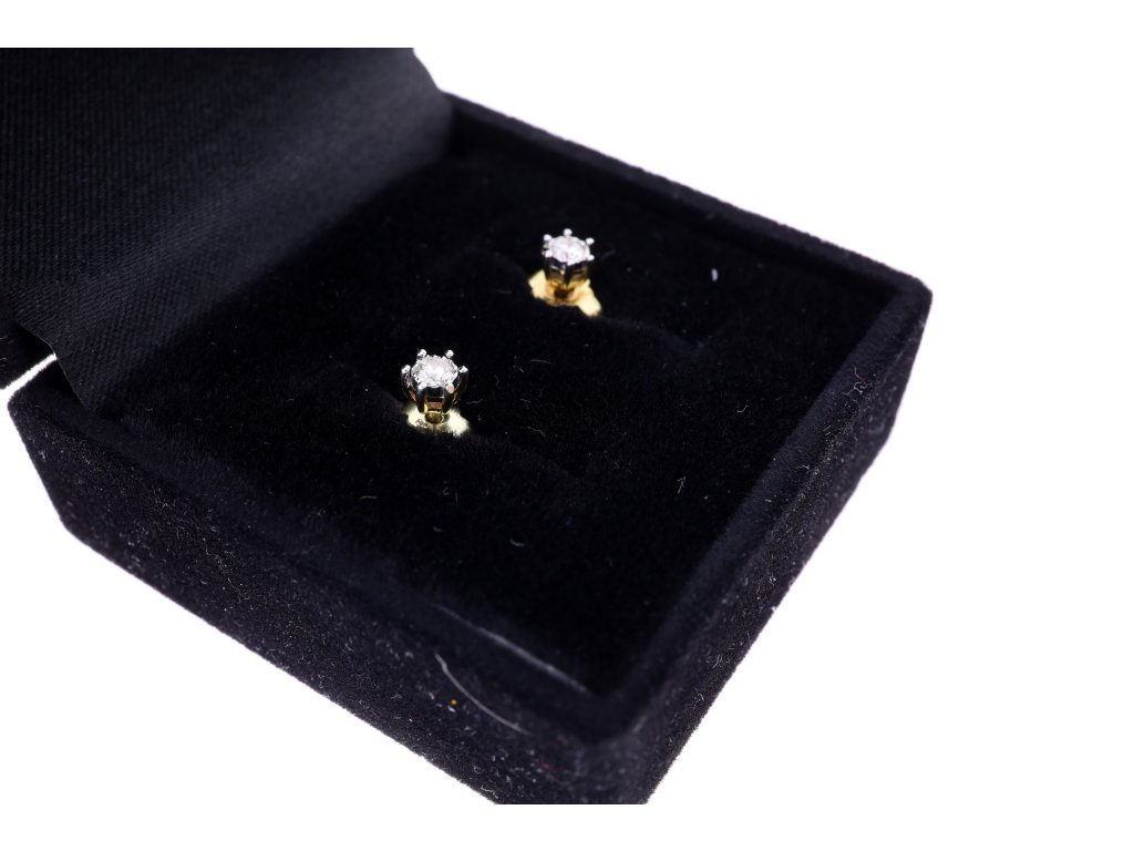 Zlaté náušnice s brilianty 0,10 ct — jemný solitér, Au 585, Vaha : 0,75 g