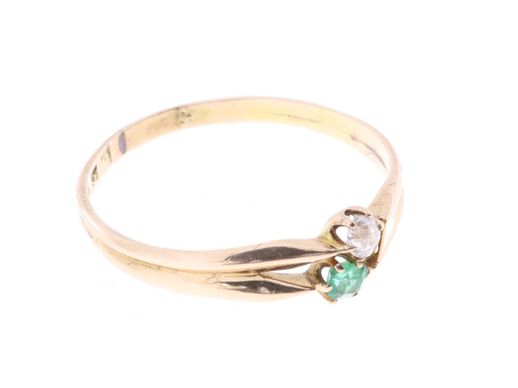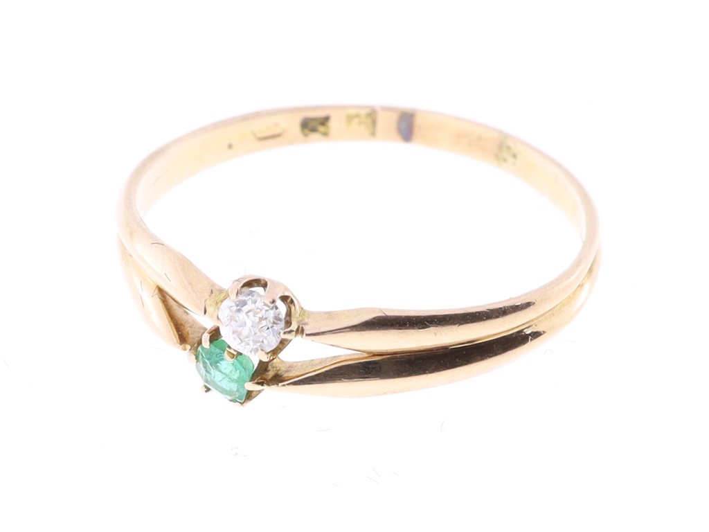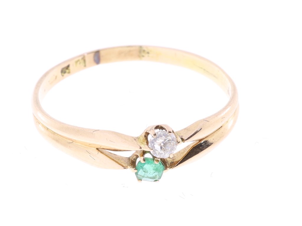 Zlatý prsten se smaragdem a diamantem